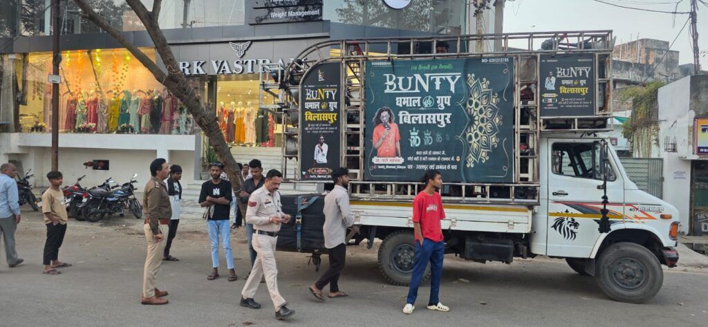 थाना सिविल लाइन क्षेत्र में राजीव गांधी चौक एवं रिंग रोड नंबर–2 के पास खड़ी दो डीजे गाड़ियों में साउंड सिस्टम वाहन से अधिक बाहर निकला हुआ तथा निर्धारित ऊंचाई से अधिक पाया गया, जिस पर कार्यवाही की गई है एवं थाना बिल्हा ,मस्तूरी, हिर्री में भी नियम उल्लंघन पर डीजे पर कार्रवाई की गई है कोलाहल एवं मोटर व्हीकल अधिनियम के तहत नियमों का उल्लंघन करने पर यह कार्यवाही लगातार जारी रहेगी। गाड़ियों में किसी भी प्रकार का मॉडिफिकेशन करने पर कड़ी कार्यवाही हेतु आरटीओ को भी पत्र लिखा गया है